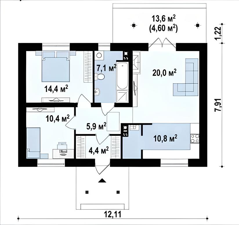14,4 м²